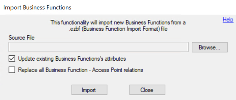 This will create an export file with the Business Functions and relation to the Access points. Enter a name for the file and location to save it.