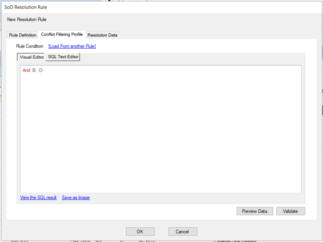 In case the scope of a resolution rule is complex and can not be created through he “helper”, the ability to add a SQL text based scope to has been added. If the sql-text based scope is added, the helper scope is cleared. If a helper based scope is added to the resolution rule the text based scope is cleared.