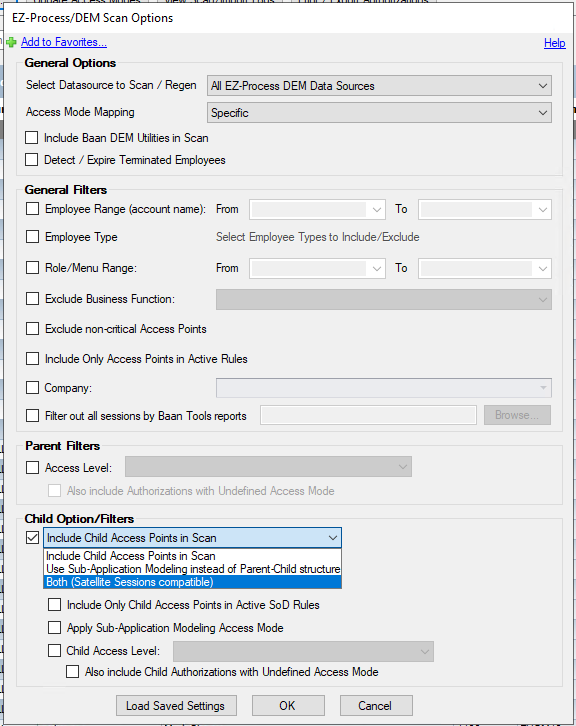 In the situation, that the child access point authorizations are generated based on the sub-application modeling information, no authorizations are generated for the so-called satellite sessions. The new option provides the ability to generate authorizations using the sub-application modeling information and the satellite session. The satellite session information is to be loaded through the Parent-Child Access Point information.