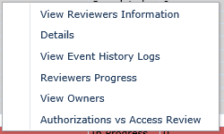 A new web portal report for the PAR Owner is added. The purpose of the Report is to report which Access Review Actions have not yet been followed up to. The Report is available to the PAR Owner from the PAR Owner Dashboard (My Periodical Access Reviews – As Owner). The PAR Owner can select a specific PAR Cycle and bring the contextual menu (right click on the record). A new option is added: “Authorizations vs Access Review”.