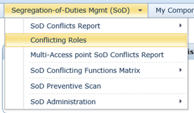 A new web portal report is added, Conflicting Roles. This report is accessible through the Menu Section “Segregation of Duties”.