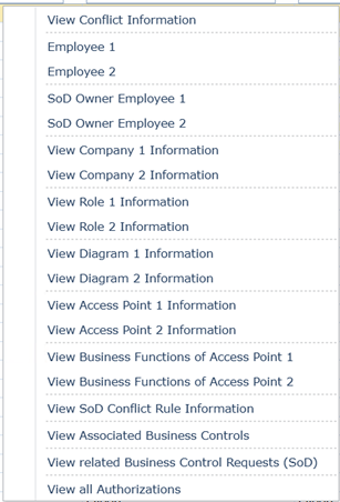 - View SoD Conflict Rule Information; Shows the detailed SoD Conflicts Rule information