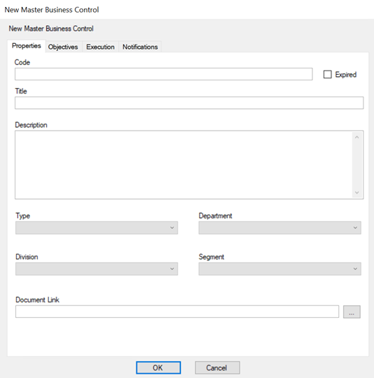 Description – Default populated with the Description of the selected Master Control. If permissions allow the Description can be edited.