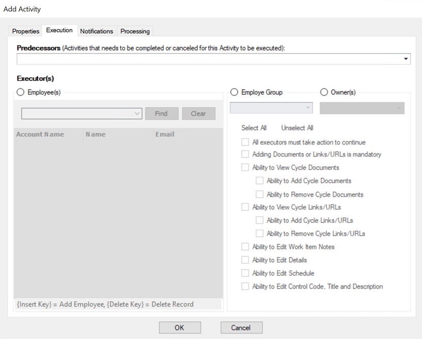 The Work Item executors capability has been extended, next to the existing Employees or Employees Groups, to select the assigned Owners of the various object.