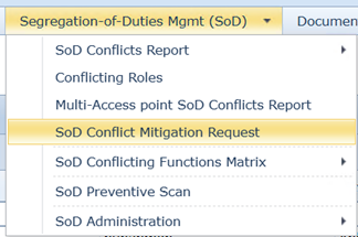 A new menu option is added, showing the initiated SoD Mitigation Requests: