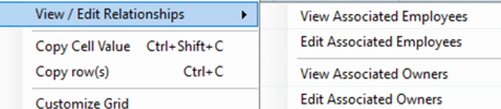 Via the contextual Menu (right click on a specific Employee Group Record) and the option View/Edit Relationships in the menu, the Owners can be Edited and Viewed.