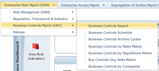 In the menu option Business Control Management, the menu items have been renamed and the reference to Testing has been removed.