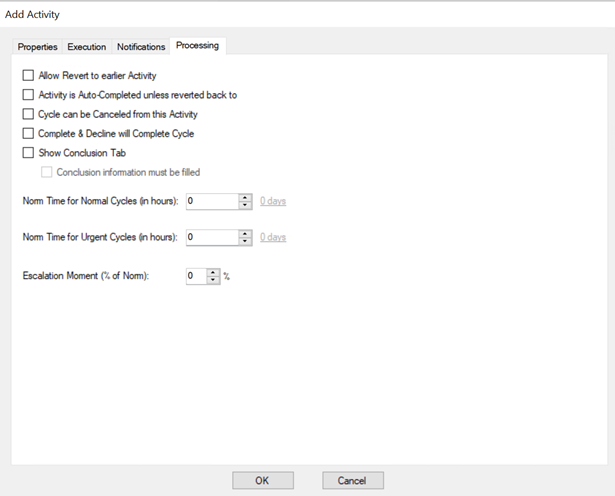 The Complete Action Button at the bottom of the dialog, has been split in to buttons, a Complete / Positive and Complete / Negative. The Labels shown in the Button can be configure per Process type in the Custom Labels section in the Environment Settings.