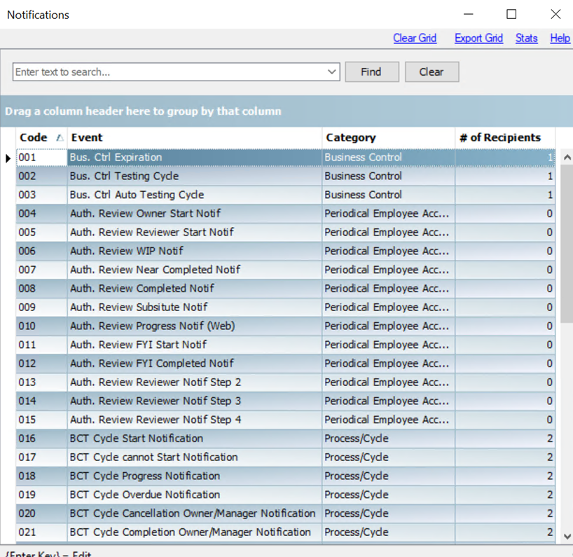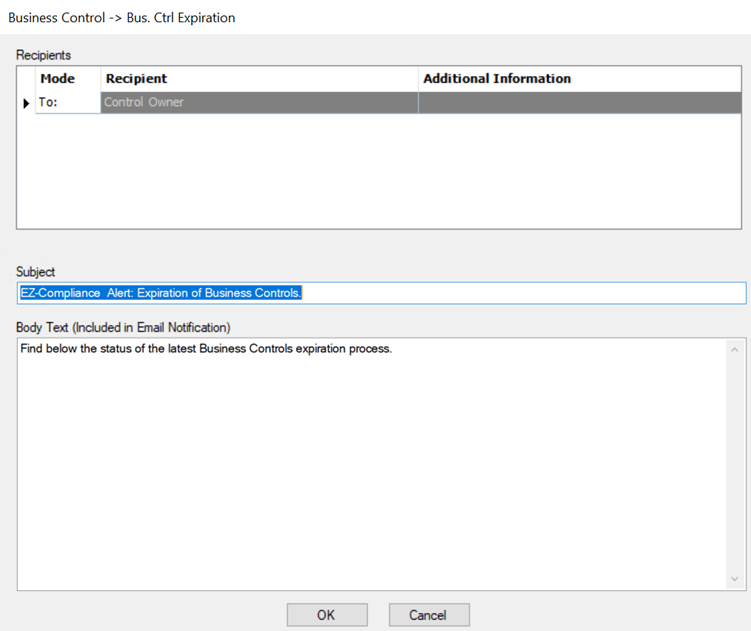 For each notification of type, the Recipients, Subject and Body text can be edited.