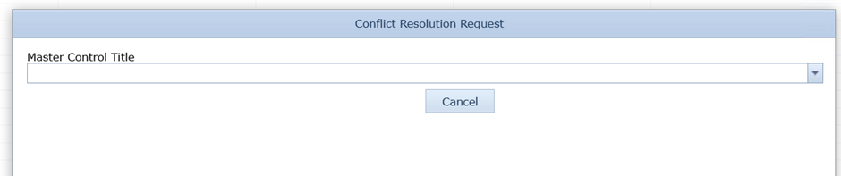 A new button has been added to the bottom of the report, “Request Conflict Resolution”. This button is only available of the user has been granted the permission in the Employee Permissions. After selecting one or more conflicts, this button can be clicked to request a mitigation for the selected conflicts. This will bring a dialog, where initially the Master Control (Template) is to be selected from which the Mitigating Control is being derived.