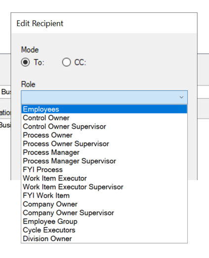 - Control Owner Supervisor; Supervisor of the Owner of the Control for which the Cycle executed