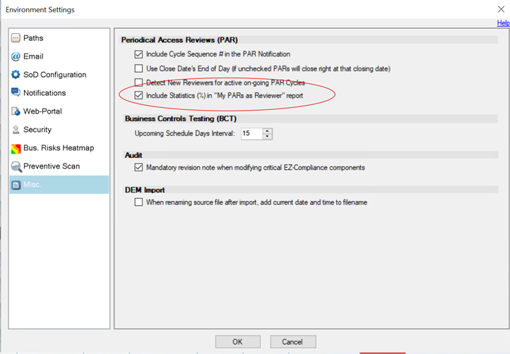 In the Environment Settings a new parameter is introduced. “Include Statistics (%) in My PARs as Reviewer” report.